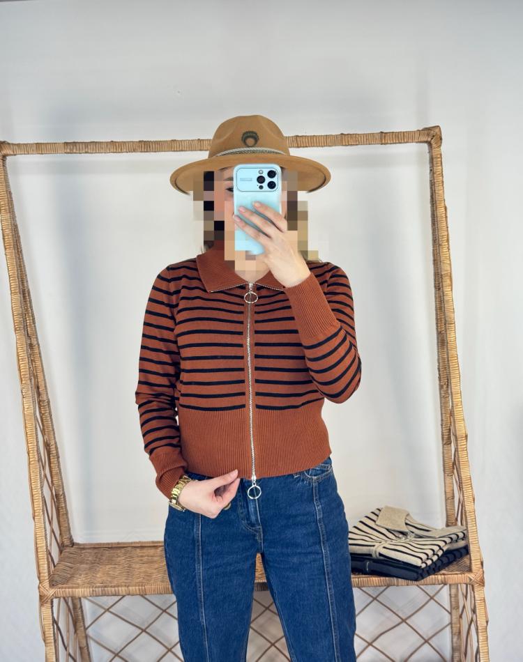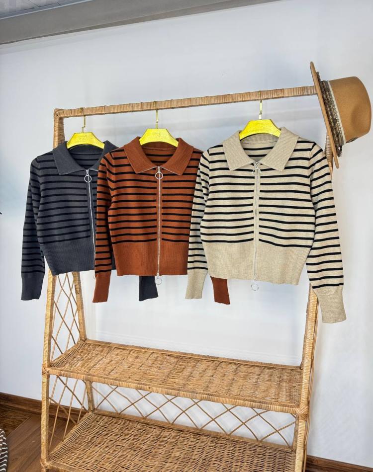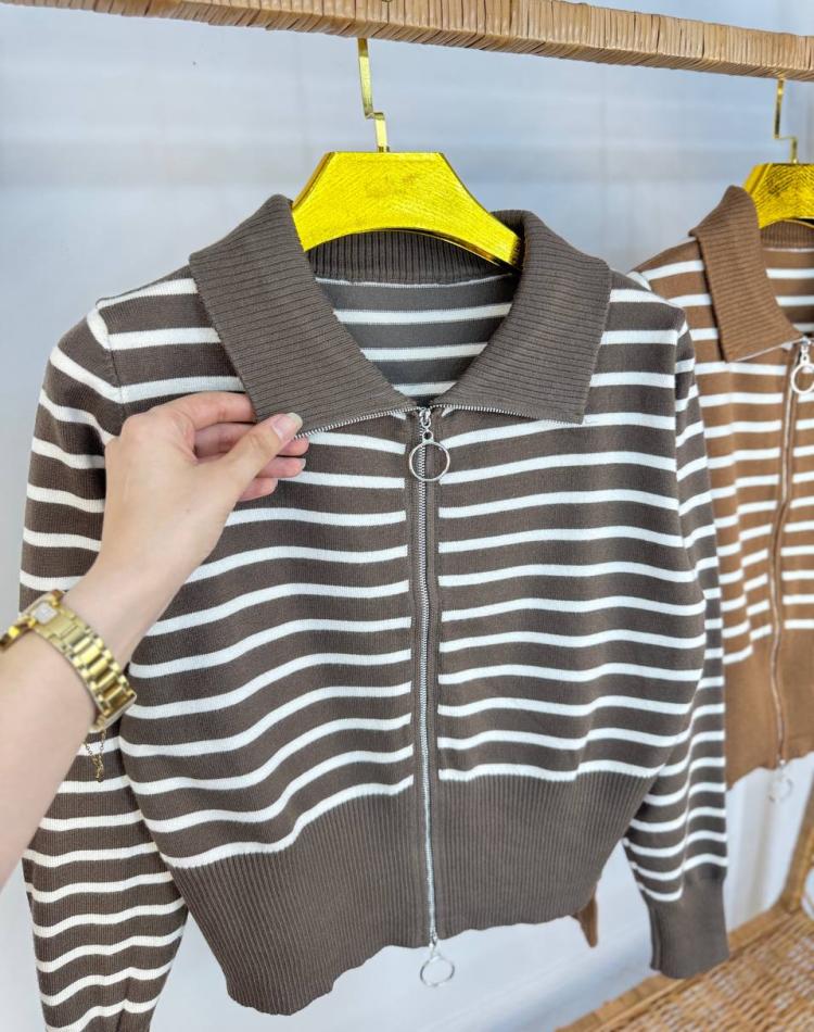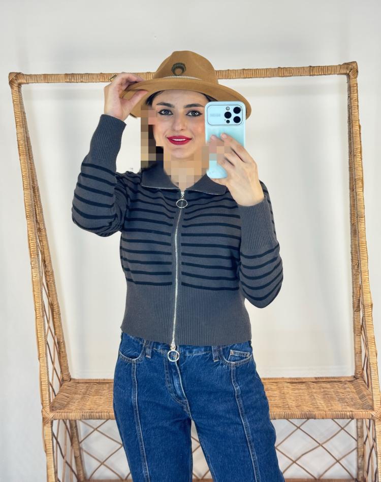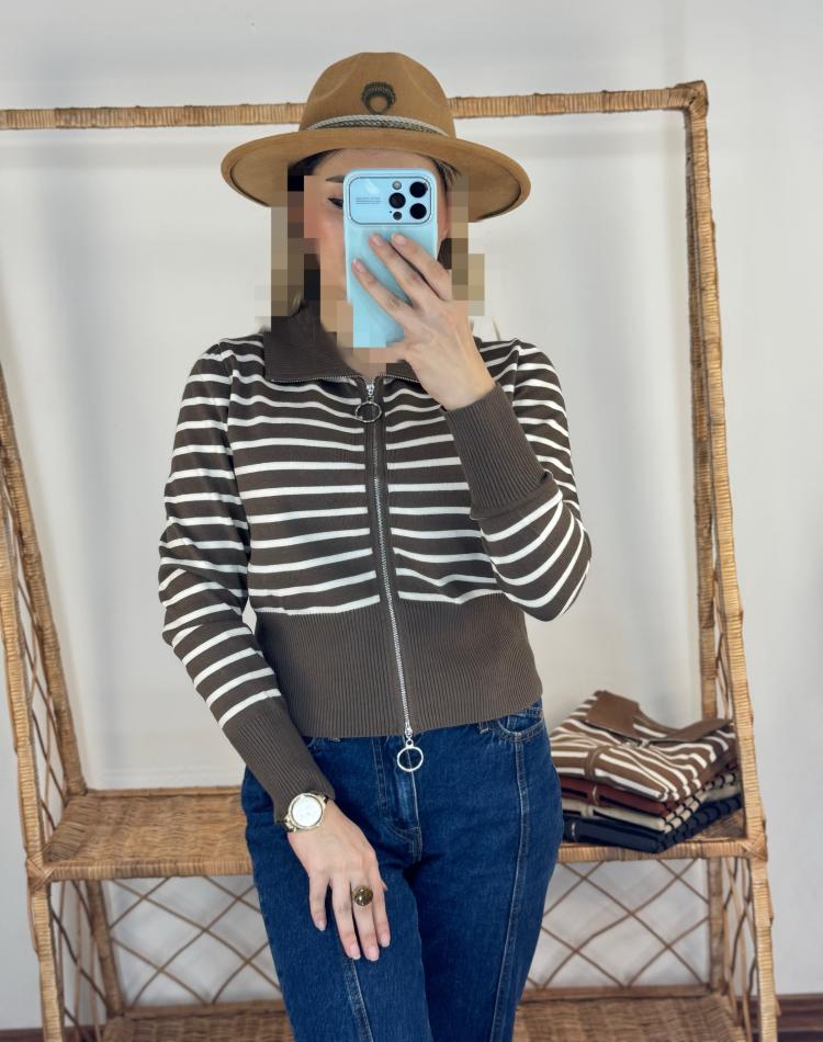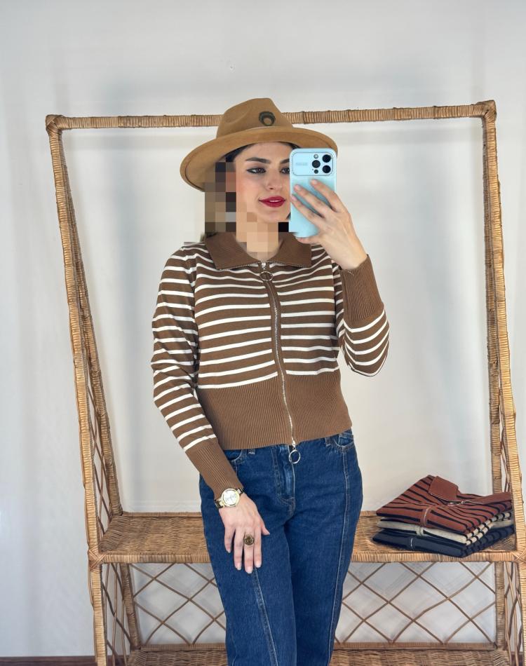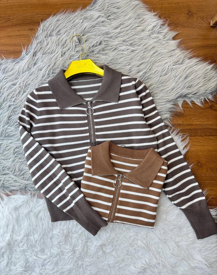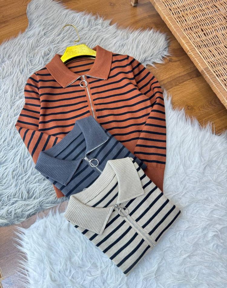 بافت نيم زيپ راه راه گرم بالا