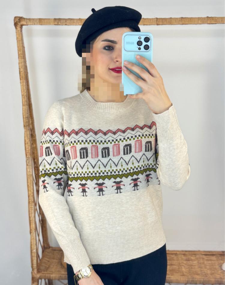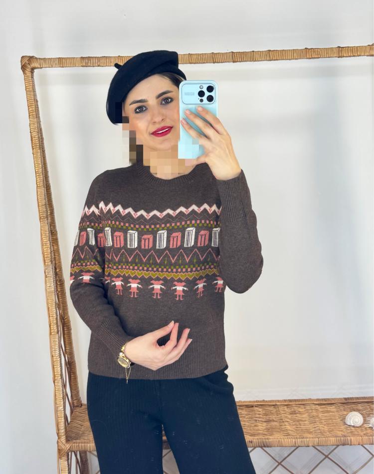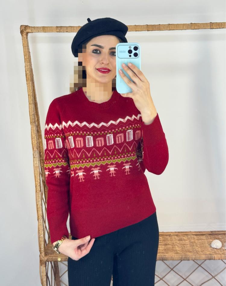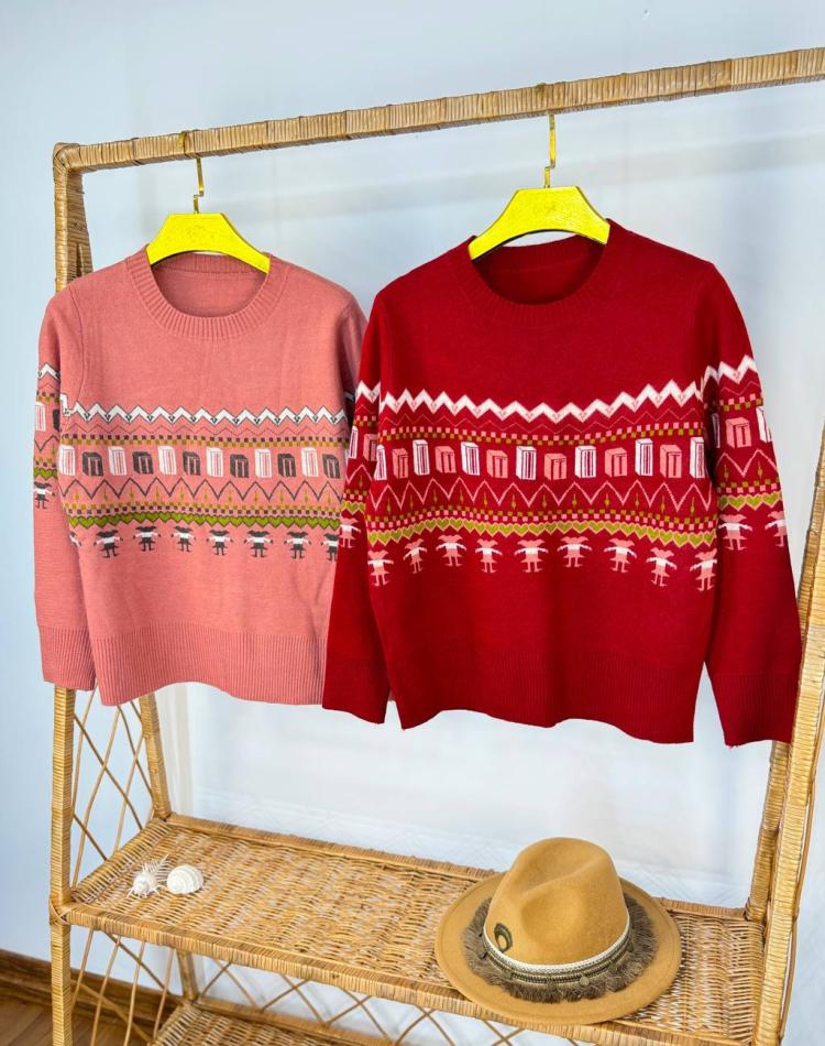 ژاکت بافت گرم بالا طرح کوبيسم